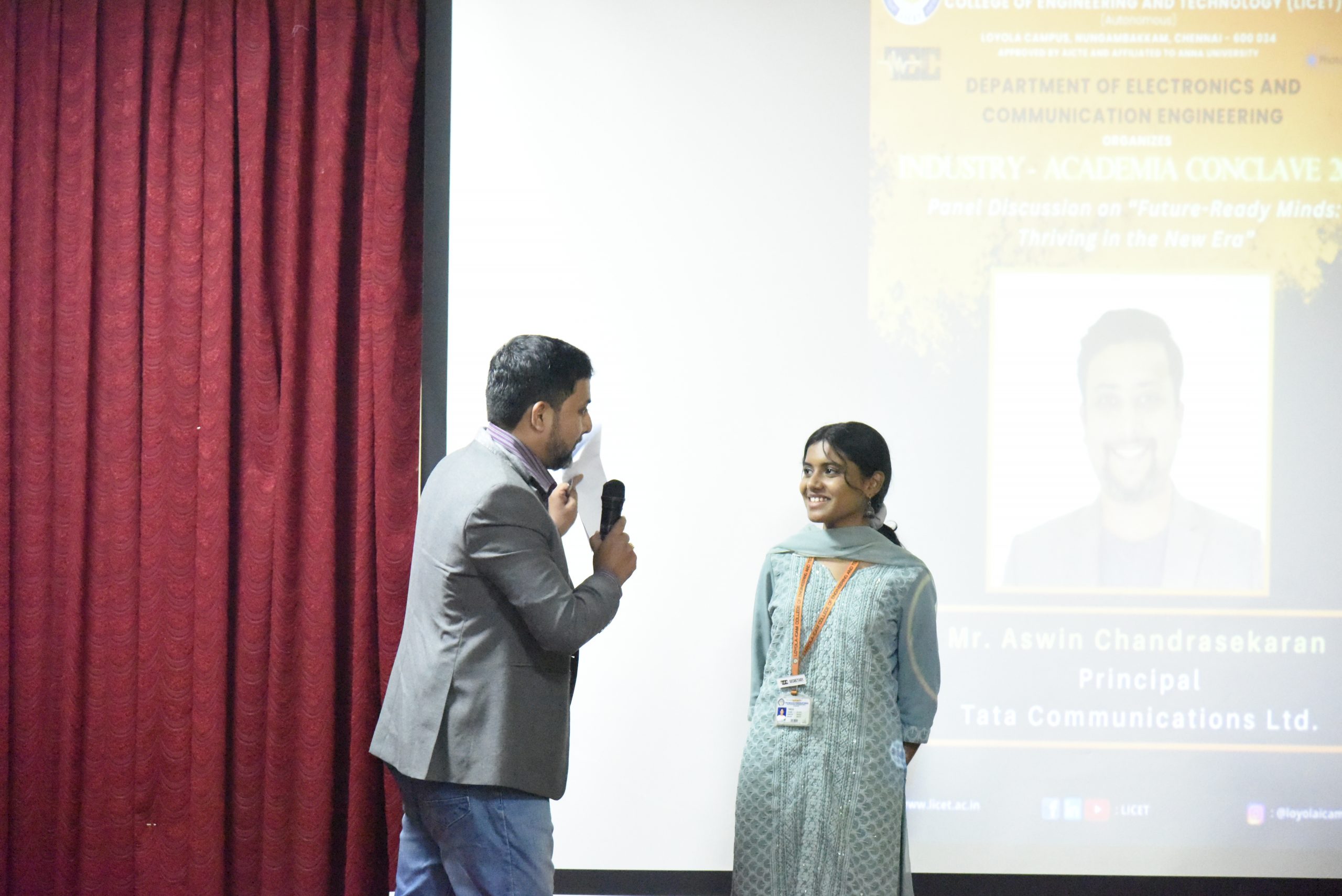 The Department of ECE – LICET organized the Industry-Academia Conclave on The Role of Digital Transformation: Meeting The Challenges of Industry 4.0 on 4/11/24. The panelists discussed about evolution of wireless networks from 1G to 5G, switches, routers and about the Government schemes – Uchhatar Avishkar Yojana and about the National Council for Cooperative Training. Awareness was created on the latest inclination towards low-code / no-code methods in the IT industry and job opportunities in the Electronic System Design & Manufacturing, and Electronics Manufacturing Services.