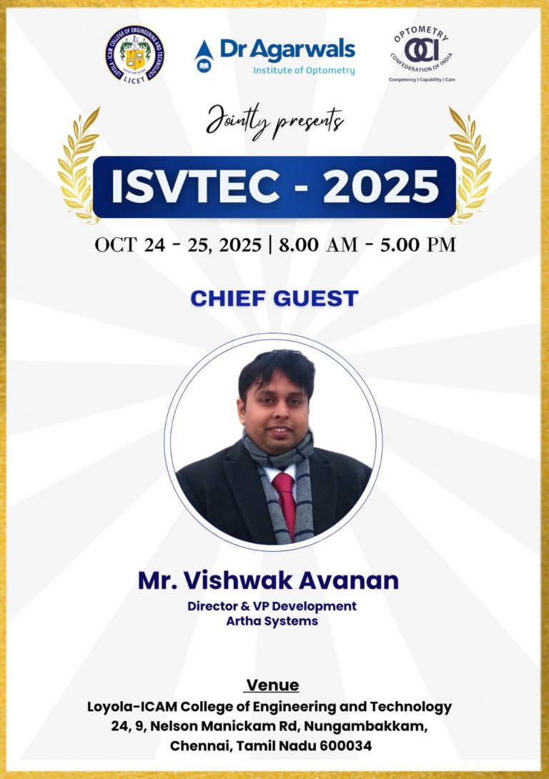 The ISVTEC – 2025 conference aims to bring together researchers, practitioners, and industry experts to explore cutting-edge innovations in the intersection of intelligent systems and vision technologies for enhancing eye care solutions. With the theme “Technology in Eyecare”, the conference will serve as a platform for presenting novel research, sharing clinical insights, and discussing the latest advancements in areas such as Computer Vision, Medical Imaging, AI in Ophthalmology, Smart Devices, Assistive Technologies, Tele-Ophthalmology, and Real-Time Vision Systems. The event will feature keynote sessions by leading experts, technical paper presentations, and interactive workshops.