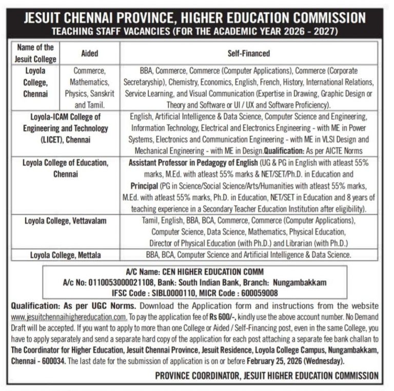 Last date for submitting the application (February 25, 2026) www.jesuitchennaihighereducation.com